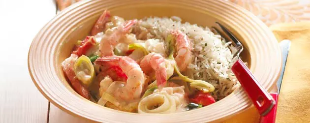 \nEssayez ce mélange de crevettes, tomates cerises, Pernod, crème à cuisson, poireaux et épices pour dire définitivement au revoir à votre mélange oignons-champignons.